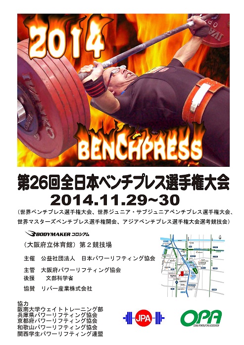 第26回全日本ベンチプレス選手権大会開催 2014年11月29日 最終更新日時 : 2025年7月5日 spa 掲載が遅くなって申し訳ございません。第26回全日本ベンチプレス選手権大会が開催されます。滋賀からもたくさんのご参加よろしくお願いします。 FacebookXBlueskyHatenaCopy